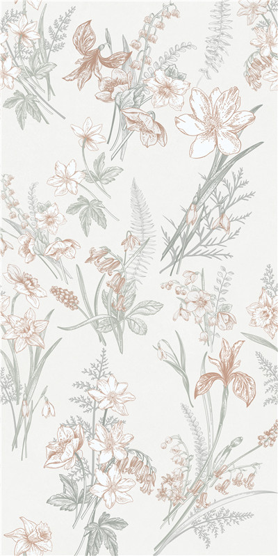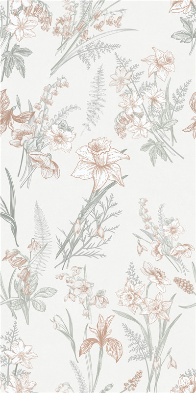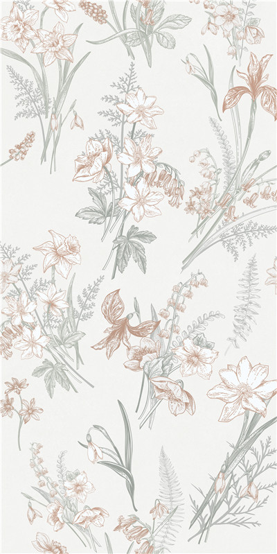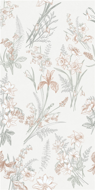 以细腻笔触勾勒出春日繁花盛景。浅淡底色上,各色花草如灵动舞者,舒展身姿。淡雅色调交织,似春风拂过春城,带来生机与温柔,为空间添一抹自然诗意。